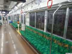 車内に入ると先ほどのラッピングが、外から中を覗き込んでいる