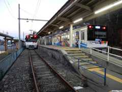 地方私鉄によくある、1面1線の行き止まり駅かと思いきや、1面2線で電車を2本留められるところが、まだ上田電鉄より輸送力の点で上回ってると感じさせられます。