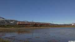 ほぼ一杯にズームを引いた状態になりました。あとは列車の動きに合わせてカメラを左へ振ります。