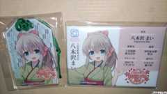 左が温泉むすめの別所藍染、右が鉄道むすめの八木沢まいで、八木沢まいには人気投票第2位の表彰状が贈られて、後ろの窓の桟上に飾ってあります。