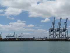 横浜や香港を知っているとオモチャのように見えるコンテナヤード。