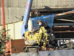 オーナーの工場でユニック車が来てミニユンボを乗せています。