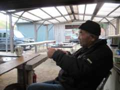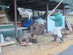 間もなく親方がやって来て、ピックアップトラックから材木を降ろして、