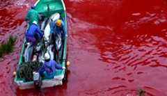 Dead dolphins are pulled from the bloody waters of the Cove in Taiji, Japan. Photo Credit: Oceanic Preservation Society
