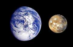 Earth-Mars Comparison: This composite image, from NASA Galileo and Mars Global Survey orbiters, of Earth and Mars was created to allow viewers to gain a better understanding of the relative sizes of the two planets.