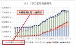 これについて、AIIBの財務諸表をもとに、バランスシート上の総資産規模、および「本業融資と思われる部分」の推移を取ってみたものが、図表3です。
