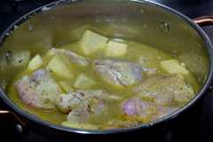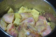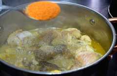 Now, add the chopped yam, enough water to cover, then cook for 15 minutes. They yam i used here was old yam and very though, hence the decision to cook along with the turkey from the start.