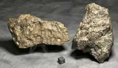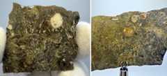 from The Meteoritical Bulletin, No. 114 Northwest Africa 17497 (NWA 17497)Western Sahara Lunar meteorite (feldspathic breccia) History: The meteorites were found in the desert. Physical Characteristics: Two rocks, lacking fusion crust, desert varnished. Petrography: (J. Garcia, ADARA) Thin section shows a brecciated textured rock, mainly composed of feldspathic clasts and a wide diversity of minerals including olivine, orthopyroxene, pigeonite, augite, spinel and anorthite. Opaques are ilmenite and chromite. All of them are set into a partially melted, microvesicular matrix. Vesicles are sometimes filled with secondary calcite. Geochemistry: Olivine Fa31.3±0.2 FeO/MnO = 91 ± 4 (n=10); Orthopyroxene Fs32.2Wo3.5 FeO/MnO = 57 (n=1); Pigeonite Fs35.3±2.2Wo7.9±2.8 FeO/MnO = 53±3 (n=5); Augite Fs19.5±0.5Wo39.4±0.3 FeO/MnO = 53-54 (n=2); Plagioclase An97.3±0.3 (n=12). Classification: Lunar (feldspathic breccia). Specimens: Type specimen in MUNA. Two thin sections in ADARA. The remaining mass with Mitchell Wright. |