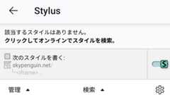 拡張機能マネージャーが開かれますので、その中にある『Stylus』をタップすると、現在のページのCSSの適用状況や設定、管理するページが用事されます。