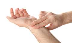- ved håndleddets tommelfingerside(arteria radialis)