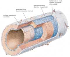 - tunica adventitia, det ytterste laget, som består av løst bindevev som fester arterien til det omkringliggende vevet.