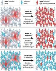 Gjennom god vaksinasjonsdekning vil ein så stor del av befolkninga bliimmune at smittestoffet døyr ut av mangel på individ som kan spreie det vidare. Nokre få ikkje-immune kan dermed vere verna av at alle omkring dei er vaksinerte. Dette blir kallaflokkimmunitet. Problemet med vaksinemotstand er at om tilstrekkeleg mange foreldre avstår frå å vaksinere barna sine, vil flokkimmuniteten svekkjast, og sjukdommar sommeslingar,polio,difteri ogkikhoste kan innførast utanfrå og spreie seg raskt i den mottakelege delen av befolkninga.