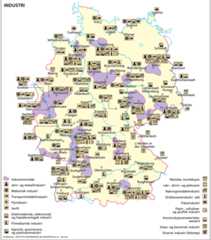 Tyskland er blant verdens fremste industriland. Ruhr-området iNordrhein-Westfalen er et av verdens største tungindustriområder, basert på rike kullfelt. I senere tid har import av olje og naturgass svekket kullets betydning. Foruten en omfattende jern- og metallindustri har området en betydelig tekstilindustri og kjemisk og elektroteknisk industri. Bilde fraDuisburg, en av Ruhr-byene.