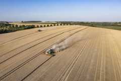 Tyskland har et moderne jordbruk. Antall sysselsatte i landbruket er gått kraftig tilbake. Bildet viser høsting av korn i den tyske delstatenBaden-Württemberg.