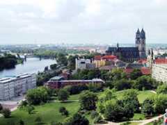 Magdeburg er en by iTyskland. Den ligger vedElbens vestbredd, cirka 120 kilometer sørvest forBerlin, ved Strasse der Romanik. Magdeburg er hovedstad i delstatenSachsen-Anhalt og var i 1952–1990 hovedstad i distriktet Bezirk Magdeburg iDDR. Byen har cirka 244 400 innbyggere (2024). Med et flateinnhold på 201 kvadratkilometer gir det en befolkningstetthet på omtrent 12 160 innbyggere per kvadratkilometer.