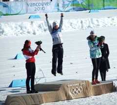 Kvinner har gradvis fått innpass i OL. De har konkurrert i langrenn siden 1952. Den norskelangrennsløperenMarit Bjørgen på pallen under OL i Vancouver i 2010.