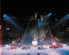 I 1994 ble vinter-OL arrangert på Lillehammer. Bildet er fra åpningsseremoniens avslutningsfase, der et stort verdensegg åpnet seg og fredsduer svevet til værs i vinternatten. Dette knyttet an til Juan Antonio Samaranchs fredsappell, som ble etterfulgt av ett minutts stillhet til minne om ofrene i det borgerkrigsherjede tidligere Jugoslavia, og særlig dem i den tidligere OL-byen Sarajevo.