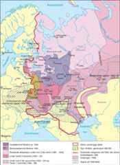 | 1880-årene | Etter mordet på tsarAleksander 2. (1881) følger en politisk reaksjonsperiode;russifisering av minoritetene |