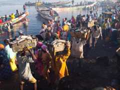 Utløpet av Senegalelva ligger ved Senegals tidligere hovedstad,Saint-Louis. Bildet viser et fiskemarked ved elva.