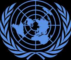 Flagget tilFN viserjordkloden omkranset av to olivengreiner.