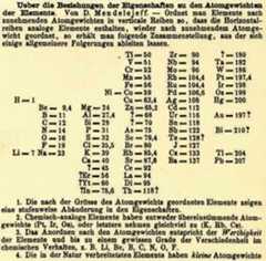 Mendelejevs utgave av grunnstoffenes periodesystem slik det ble trykt i Zeitschrift für Chemie i 1869. Mendelejev lot flere ruter stå tomme og forutsa egenskaper for grunnstoffene som ville fylle disse plassene. De første tre av disse forutsagte grunnstoffene som ble oppdaget var scandium, gallium og germanium.