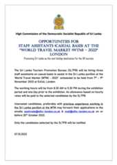 We wish to inform those who make inquiries on applying for visas for Sri Lanka that the temporary suspension of the issuance of visas put in place due to COVID-19 pandemic still continues. Accordingly, the issuance of all categories of Sri Lanka visas for all foreign nationals remains suspended until further notice. (For further details please visit: