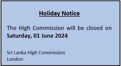 Therefore, please note that at presentthe High Commission of Sri Lanka in the UK does not accept applications for the issuance of any type of Sri Lanka visas for foreign nationals.