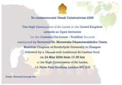 Held at the High Commission premises and simultaneously accessible online via Zoom, the event drew wide participation from Sri Lankan religious leaders, politicians, community organizations, and volunteers in the United Kingdom including the Chief Sanghanayake of Great Britain, Venerable Bogoda Seelawimala Maha Thero.