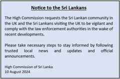 Notice to Sri Lankan nationals on short term Visas to the UK