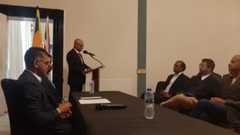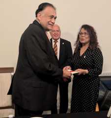 High Commissioner Nimal Senadheera presents open copy of Letter of Credence