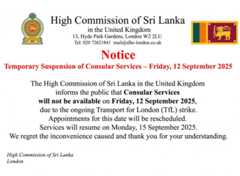 Special Notice : Temporary Suspension of Consular Services – 12th September 2025