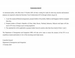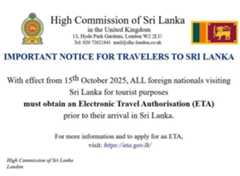 IMPORTANT NOTICE FOR TRAVELERS TO SRI LANKA!