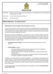 Advisory on Current Weather and Tourism Situation in Sri Lanka Advisory on Current Weather and Tourism Situation in Sri Lanka