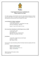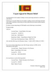 Urgent appeal for Overseas Contributions for Disaster Relief in Sri Lanka