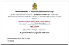 Candlelight Remembrance Vigil for Sri Lankans Affected by Cyclone Ditwah Successfully Held in London
