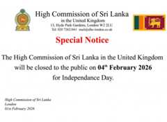 On Sunday, 30 November 2025, the High Commission of Sri Lanka in the United Kingdom convened a meeting to coordinate collective disaster relief support for communities devastated by Cyclone Ditwah and the severe flooding it caused. The meeting also focused on mobilizing assistance for the long-term rebuilding of the country.