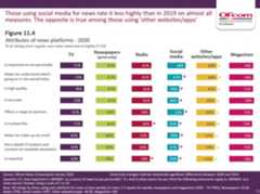Television also comes out relatively well, with high scores for trustworthiness, quality and accuracy – though it doesn’t do quite as well when it comes to impartiality or opinion-forming (which hints that some members of public believe TV news is politically biased). All TV news providers were ranked similarly to each other, though the BBC comes out on top, with Sky News second and ITV third.