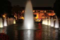 夜景スポットとしては東京国立博物館をバックに広がる大噴水で、様々なパターンの噴水の形を楽しめるだけでなく、夜にはライトアップもされます。