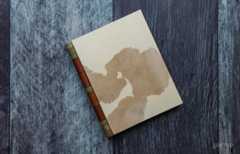 The Lettered edition is limited to 26 copies lettered A-Z and is bound as a concave spine binding sewn on paper stubs, which have been attached to a handmade ring structure covered in goatskin at the back of the book. The front and back boards are covered in custom made spotted calf vellum with goatskin rings attached, interlocking at the spine, and finally hinged using an acrylic rod passed through each of the rings.