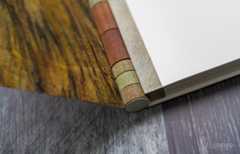 The hinged rod structure allow the boards total flexibility and ease of opening, whilst the sewn stub also provides the textblock with greater functionality and protection. The concave has been in use since the 1980s in one form or another, known as either piano hinge or door hinge bindings; and examples of rod bindings date back as far as the Renaissance period.
