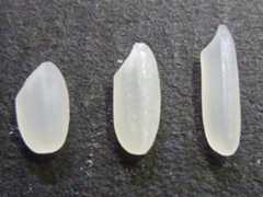 There are three broad groups of rice:short-grain,medium-grain, andlong-grain. Short-grain rice is the most commonly consumed in Japan and is mostly Japonica rice. Medium-grain is rice that is medium in length such as Calrose rice. Long-grain rice is long and thin like rice eaten in Thailand, and known as Indica rice.