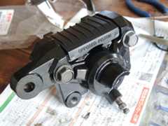 ブレーキ・フルードが付くと普通の塗料では溶けてしまうのであまり塗装はしたく無いのですが、オリジナルの塗装が斑に剥げていてみっともない。丁度使い残しのホイール用塗料が有ったのでそれで塗りました。(塗り終わったところの写真は撮り忘れていました。)