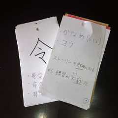 ムスメっち用に私が大きい字を書いて、妻が小さい用例などを漢字の書いた暗記カード。机の片隅で埃を被っておりました。