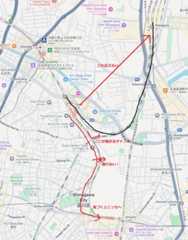 複雑にジグザグ歩いて距離を稼ぐよりも、Googleマップで距離を検索して「何キロもあるぞ、すげー」と実感できる分かりやすさが大切です。老後に孫に「ワシが若い頃はどこからそこまで歩いたもんじゃ」と自慢したいわけです。独身ですが。 - 大通りや鉄道沿いを進む