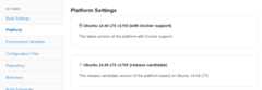 最初に、「Project Settings」でDocker support付きのプラットフォームを指定します。