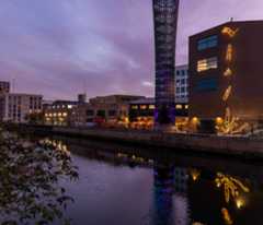 Diver is a light installation that depicts a figure diving into water, complete with a splash. The work uses an animation effect created by lighting each stage of movement in sequence. It was designed by British artist Ron Haselden, in collaboration with 600 London primary school pupils, through a series of animation workshops focussing on sports and wellbeing. The workshops were part of the GAMES art project, an initiative developed by curators Artwise for the London 2012 Cultural Olympiad.Diveris installed within walking distance of Queen Elizabeth Olympic Park and London Aquatics Centre and forms part of the tenth anniversary celebrations of the London 2012 Olympic and Paralympic Games.