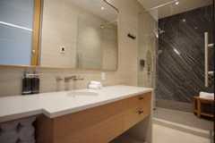 Unwind in one of our three private luxury shower rooms, located in the heart of the amenities building. Accessed with your personal security fob, each room is crafted with west coast stone and wood accents, and features heated floors and complimentary towels. Designed for comfort and calm, these spa-like spaces offer a serene and rejuvenating experience for every guest.