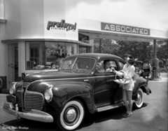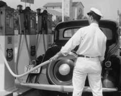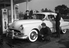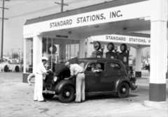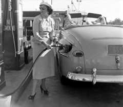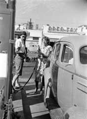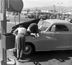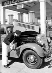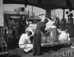 | (1948)*– “I think I found the problem!” - Gilmore Self-Service Gas Station. Photo Credit: Life Magazine |
