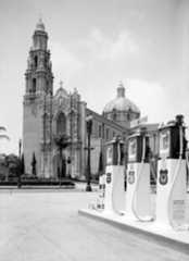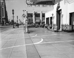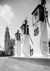 | (1929)^^ - Close-up view showing the pumps at the Richfield Service Station located on the southeast corner of Santa Monica Boulevard and Ogden Avenue in West Hollywood. Today, aparking lot occupies this space. |
