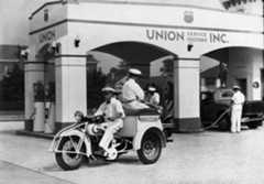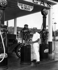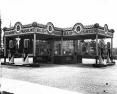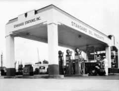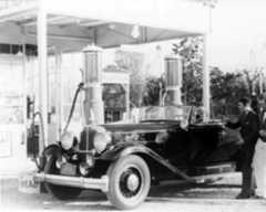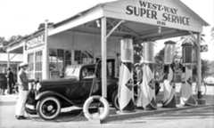 Historical Notes As automobile sales increased, the demand for fuel led to a more systematic way of delivering it, and in 1914 Standard Oil of California opened a chain of 34 homogeneous stations along the West Coast. Major oil companies moved quickly to secure their own gas dealers, made possible by technical advances in gasoline pumps. Soon pumps were being installed not only at the new service stations, but in front of hardware stores, feed companies, livery stables, and a variety of other retailers. Super service stations were important elaborations of the original filling stations. Introduced in Los Angeles prior to World War I, super service stations combined operations that had been handled separately. Before that time, a motorist went one place for gas and oil, and other places for lubrication and cleaning, for repairs, or for tires and other accessories. Combining these activities was convenient for consumers and opened up new marketing possibilities for those interested in taking advantage of the boom in automobiles. The earliest known super service station—Service Town—was built in 1914, three miles from downtown Los Angeles. Several of these stations were constructed in southern California in the early 1920s and soon spread across the country. |